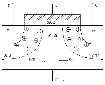 Рис. 1.3 – Схема, иллюстрирующая положение диффузионного электрического поля исток-подложка Eип