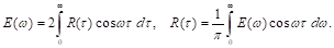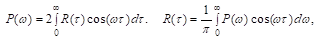 Функции R(τ), Р(ω) четные, поэтому интегрирование можно вести только в области ω>0: