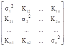 Корреляционные моменты является количественной мерой степени статистической связи (взаимной зависимости или корреляции) случайных величин Хi и Хj. Для системы случайных некоррелированных величин матрица корреляционных моментов является диагональной матрицей дисперсий с нулевыми значениями Kij при i ¹ j (см. пример матрицы si2).