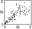Значения коэффициентов корреляции заключены в пределах от -1 до +1. При r = 0 случайные величины считаются независимыми друг от друга (например, величины (Х,Y) на рис. 8.4.1), при |r| = 1 - полностью коррелированными (например, величины Х = b×Y с произвольным значением коэффициента b), во всех остальных случаях чем ближе значение |r| к 1, тем больше корреляция между случайными величинами, которая может иметь как прямой, так и обратный характер (при r<0). Величины Х и Y на рис. 8.4.5 явно коррелированны между собой с определенным коэффициентом прямой корреляции.