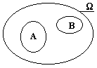 Для иллюстрации различных положений теории вероятностей удобно использовать условные графические отображения пространств случайных событий, пример которых приведен на рис. 8.2.1. Полное пространство W элементарных событий wi ограничивается произвольным контуром, площадь которого принимается равной 1 и равна вероятности появления событий wi в пространстве W, при этом полагается, что события wi равномерно заполняют пространство W. Группы событий w Î A или w Î В отображаются соответственно замкнутыми контурами внутри пространства W с площадями, равными вероятностям событий А и В.