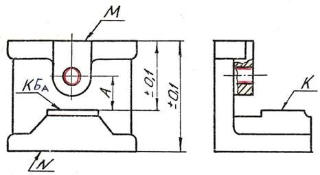 Например, отказываясь использовать в качестве технологической базы в операции обработки отверстия (рис.4) конструкторскую базу (поверхность К), нужно воспользоваться для этой цели поверхностью М ( = 0,2 мм), но не поверхностью N ( = 0,4 мм).