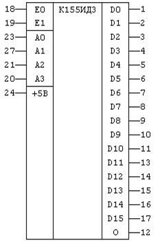 Входные регистры ДД24-ДД27 выполнены на микросхеме К589 ИР12, которая изображена на рис.12. 8.