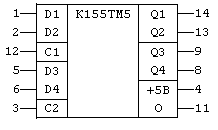 Выходные регистры ДД16-ДД23 выполнены на микросхеме К155ТМ5, которая представлена на рис. 12.9.