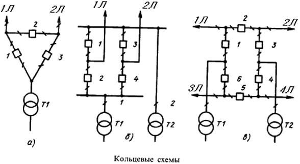 Достоинством всех кольцевых схем является использование разъединителей только для ремонтных работ.