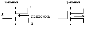 Рассматриваем в дальнейшем n – канальные транзисторы; в p - канальном p и n меняются местами, поэтому у всех напряжений надо изменить знак.