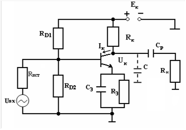 1. . Поэтому пренебрегаем  влиянием  RЭ и CЭ на переменный ток считая CЭ  достаточно большим.