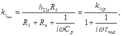 Коэффициент усиления  ; сдвиг фазы  тока определяется следующим соотношением .