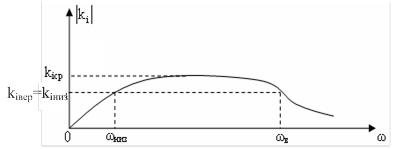 На рисунке приведен график АЧХ, которая определяется  выведенными для соотношениями. На средних частотах  коэффициент усиления |ki|=kiср. На      низких  частотах |ki| убывает из-за влияния разделительной емкости Cp, величина частотных искажений определяется как ,
