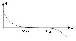 В полосе частот wниз<w<wв усилитель не меняет фазу тока, j=0. За пределами полосы частот сдвиг фазы, вносимый усилителем, положительный на низких частотах и отрицательный на высоких, но в обоих случаях убывает  с ростом частоты.