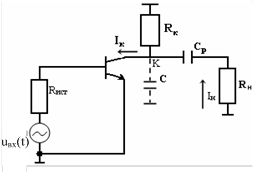 C - паразитная емкость между коллектором и эмиттером транзистора, обусловленная как емкостью самого транзистора, так и емкостью монтажа. Нас интересует усиление тока Iн протекающего через нагрузку, который связан с током коллектора соотношением