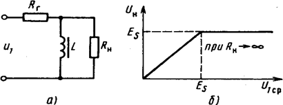 Если нагрузку подключить параллельно обмотке реактора, как показано на рис. 3.3,а, то среднее значение напряжения на ней (Uн) в функции среднего (за полупериод) значения напряжения питания