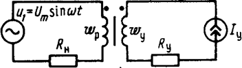 где U'y=UyWp/Wy - напряжение Uy, приведенное к виткам рабочей обмотки; R'y=Ry (Wp/Wy)2 - сопротивление Ry, приведенное к рабочей обмотке. Из (3.6) следует, что приращение индукции в интервале a<wt<p тем меньше, чем меньше R'у и U'y по сравнению соответственно с RH и Uicp (среднее за полупериод значение напряжения u1). При R'y<<Rн и U'y<<Uicp приращение индукции Вб становится настолько малым, что можно пренебречь ЭДС, развиваемыми на зажимах обмоток трансформатора Б, и считать, что все напряжение питания Ui выделяется на нагрузке, а в цепи управления протекает ток iy=iнWp/Wy. Это полностью согласуется с теорией трансформаторов, так как на интервале a<wt <p при R'y<Rн и U'y<U1cp трансформатор Б оказывается в режиме короткого замыкания. В следующий полупериод трансформаторы А и Б поменяются местами (трансформатор А будет размагничиваться, а трансформатор Б намагничиваться), но процессы, происходящие в них, будут аналогичны рассмотренным (рассматривается установившийся режим работы МУ, для которого ВуА=ВБ/wt=p=ВуБ). Следовательно, МУ идентичен ключу между нагрузкой Rн и источником питания U1. Момент замыкания этого ключа соответствует моменту насыщения одного из магнитопроводов. Понятно, что любое изменение Uy приведет к тому, что значение индукции в конце полупериода для одного трансформатора не будет равным значению индукции в начале полупериода для другого трансформатора и в результате изменится по окончании переходного процесса значение угла а и ток нагрузки (среднее его значение). Отличительной особенностью рассмотренного МУ является отсутствие постоянной составляющей в токе рабочих обмоток. Подобные МУ называются дроссельными (ДМУ). Из принципа действия ДМУ следует, что на интервалах полупериода, когда материал одного из трансформаторов насыщен, справедливо соотношение inwp=iywy, являющееся основным уравнением ДМУ. Это уравнение остается справедливым во всем диапазоне изменения угла насыщения а от 0 до p. Угол а, равный л, соответствует работе ДМУ при Uy=0, когда материал ни одного из магнитопроводов не достигнет насыщения (рассматривается случай, когда Вm