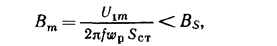 где U1m - амплитудное значение переменного напряжения, изменяющегося с частотой f, Sст - поперечное сечение стержня магнитопровода; Bs - индукция насыщения материала магнитопровода.