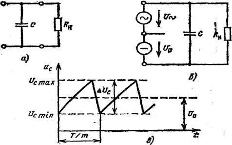 При соблюдении этого условия большая часть переменной составляющей выпрямленного тока, минуя нагрузку, как бы замкнется через конденсатор.