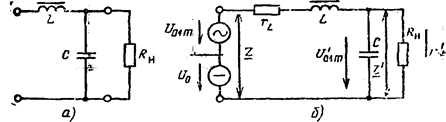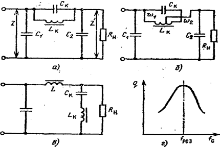 На рис.5.7,а приведена схема фильтра, аналогичная П-образному фильтру C1LC2, с последовательным включением нагрузки в коллекторную цепь транзистора.