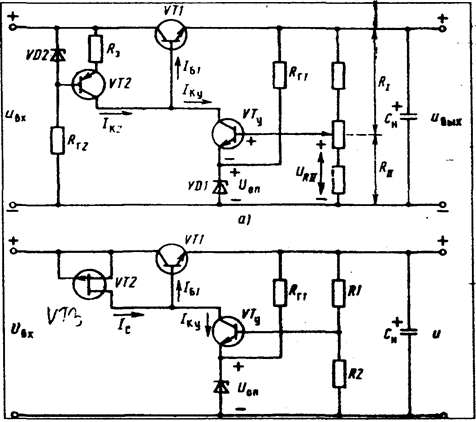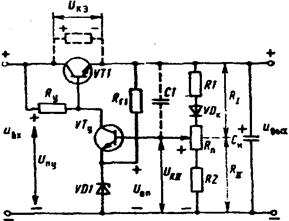 Рис. 6.5 Схема двухкаскадного параметрического стабилизатора