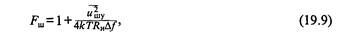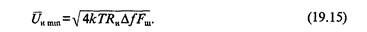 Уравнение (19.15) определяет предельную чувствительность усилителя в виде уровня минимального входного сигнала источника, при котором на выходе усилителя выполняется условие равенства напряжения сигнала напряжению шума. Из этого уравнения следует, что при расширении полосы пропускания усилителя и увеличения его коэффициента шума предельная чувствительность усилителя ухудшается.