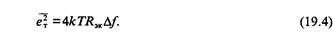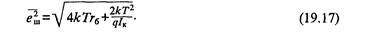 Первый член в уравнении (19.21) определяет абсолютный нижний предел минимального входного сигнала, так как он представляет собой напряжение тепловых шумов источника сигнала в полосе пропускания усилителя. Два других члена выражения (19.21) определяют снижение предельной чувствительности усилителя за счет его собственных шумов.