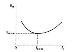 Таким образом, первый член в формуле (19.17) не зависит от тока коллектора, а второй убывает с ростом тока /к. График зависимости напряжения Сц, от тока коллектора приведен на рис. 19.4 а. В связи с этим для снижения ещ целесообразно повышать ток коллектора до значения 0,1...2мА.