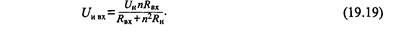 Согласование усилителя с источником сигнала по шумам. Наиболее высокую чувствительность имеют усилители при согласовании источника сигнала с шумящим усилителем через входной трансформатор. Схема подключения источника сигнала и„ с внутренним сопротивлением ./?„ к усилителю с входном сопротивлением 7?ах через согласующий трансформатор приведена на рис. 19.6 а.