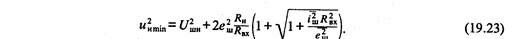 Уравнение (19.22) позволяет при заданном значении собственных шумов усилителя определить оптимальный коэффициент трансформации. Подставляя значение (19.22) в уравнение (19.21), найдем минимальный усиливаемый сигнал (19.23)