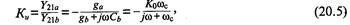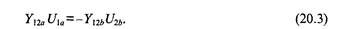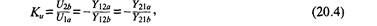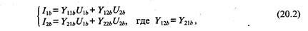 Передаточную функцию для схемы, приведенной на рис. 20.1, можно получить, используя уравнения четырехполюсников в У-параметрах: