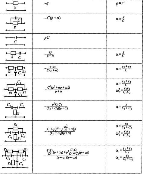 | № | Схема цепи | Передаточная проводимость У^! | Параметры |
