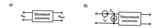 Рис. 19.1. Эквивалентная схема шумящего (а) и нешумящего (б) усилителя