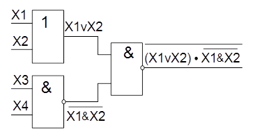 Сложные логические функции реализуются на основе простых логических элементов, путём их соответствующего соединения для реализации конкретной аналитической функции. Функциональная схема логического устройства, реализующего сложную функцию,
