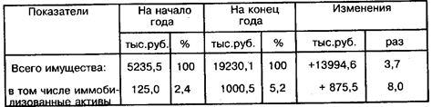 Из приведенных данных видно, что за истекший год имущество предприятия увеличилось на 14,0 млн.руб. Большая часть прироста (71,6%) была направлена в товарные запасы. Значительное увеличение объемных показателей было вызвано инфляцией. Следует отметить как негативный момент исключительно низкий удельный вес иммобилизованных активов, что, впрочем, характерно для большинства торговых предприятий на современном этапе. Важнейший элемент производственного потенциала предприятия – его материально-техническую базу – можно охарактеризовать следующими показателями (табл.7).