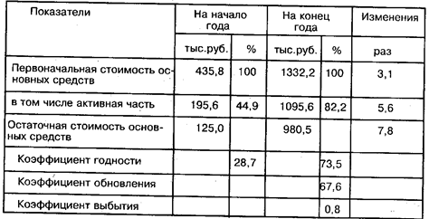 Приведенные данные показывают, что за анализируемый период значительно возросла доля активной части основных средств – до 82,2%, что, безусловно, должно рассматриваться как положительный момент в развитии материально-технической базы предприятия. Структура основных средств изменилась за счет приобретения нового оборудования, а коэффициент изношенности в целом составил 26,5%. Тем не менее, доля финансовых ресурсов, направленных в основные средства предприятия, остается невысокой, поэтому задача укрепления материально-технической базы является в данном случае одной из основных стратегических задач, стоящих перед предприятием.