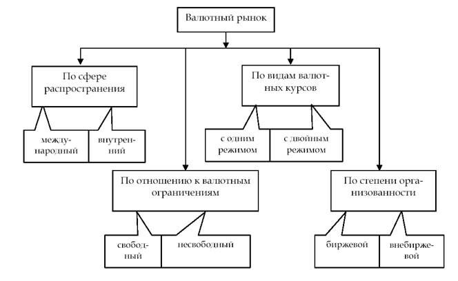 Валютные рынки можно классифицировать по целому ряду признаков: