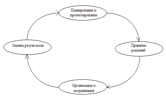 Схема может иметь и более подробный вид, в зависимости от того, насколько детально мы представляем функции управления, но общий принцип остается прежним: обязательными условиями успешности управленческой деятельности являются 1) обязательное наличие в цикле всех функций (всех групп функций) и 2) последовательность из осуществления.