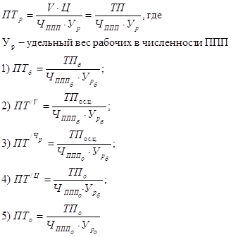 2) по категориям, на которые рассчитывают производительность труда, различают: