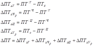 2. Определяют влияние эффективности использования трудовых ресурсов на выпуск продукции (расчет ведут в действующих ценах):