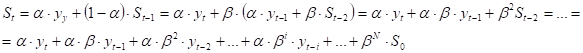 оказывается взвешенной суммой всех членов ряда. Причем веса остальных уровней ряда убывают по мере их удаления в прошлое соответственно экспоненциальной функции.