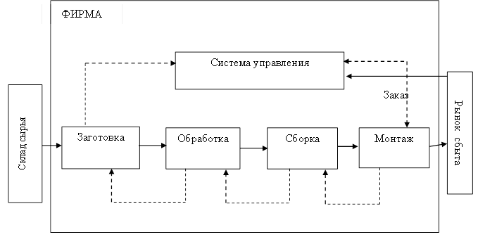 Материальный поток на своем пути от первичного источника сырья до конечного потребителя проходит ряд производственных звеньев. Управление материальным потоком на этом этапе имеет специфику и называется производственной логистикой.