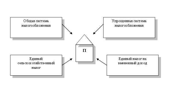 Таким образом, система налогообложения, действующая в РФ достаточно громоздкая. В связи с этим, к различным предприятиям могут применяться разные налоговые режимы. Применяемые налоговые режимы зависят от мощности производственного потенциала, от видов экономической деятельности, от показателей дохода (прибыли). Принцип применения налоговых режимов следующий: чем меньше предприятие, чем более простым видом деятельности оно занимается, чем меньше показатели доходности, тем более простой налоговый режим у предприятия.