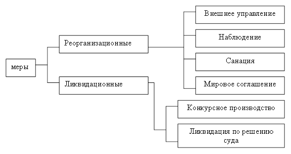 К предприятиям – банкротам могут применяться реорганизационные и ликвидационные меры (Рис. 13.3).