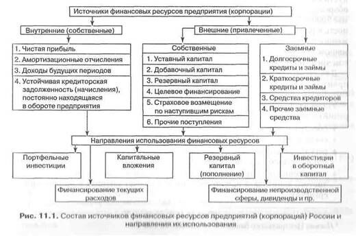 Состав финансовых ресурсов предприятий (корпораций), которые формируют их денежные потоки, представлен на рис. 11.1.