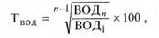 где Твод—средний темп изменения (роста или снижения) общей суммы валового операционного дохода в рассматриваемом отрезке времени (год или квартал), в %; ВОД,, —общая сумма валового операционного дохода в сопоставимых ценах в последнем периоде рассматриваемого отрезка времени (квартала или месяца); ВОД —общая сумма валового операционного дохода в первом периоде рассматриваемого отрезка времени (в первом квартале или месяце); «—количество периодов в рассматриваемом отрезке времени;