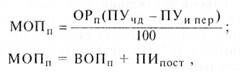 гдеМОПп —плановая сумма маржинальной операционной прибыли; ОРп— плановый объем реализации продукции; ПУЧД — планируемый уровень чистого операционного дохода к объему реализации продукции, %; ПУИ пер —планируемый уровень переменных операционных затрат (издержек) к объему реализации продукции, %; ВОПп —плановая сумма валовой операционной прибыли; ПИПост ~ планируемая сумма постоянных операционных затрат (издержек).