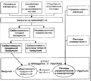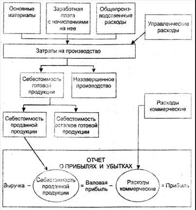 Рис. 2. Учет затрат и калькулирование себестоимости продукции по системе полной себестоимости (управленческие затраты отнесены к периодическим).
