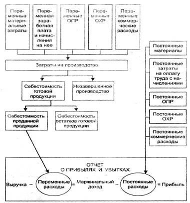Появление «Директ-костинга» имело и чисто бухгалтерскую причину. Счетные работники в то время пришли к выводу, что все затраты следует разделить на относящиеся к данному отчетному периоду (реализуемые в нем) и связанные с выработкой продукции (они относятся к тем отчетным периодам, когда произойдет реализация продукции). Первые получили название постоянных, вторые — переменных. Если этот подход правилен, то, естественно, в состав себестоимости можно и нужно включать только прямые затраты. Основным возражением против сказанного являлось то, что в этом случае оценка незавершенного производства в балансе оказывается заниженной, а расходы каждого отчетного периода — завышенными.