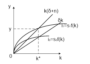 Новым моментом в модели был учёт Н. Калдором неравенства склонности к сбережениям различных социальных групп. Функция сбережений общества имеет вид: