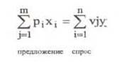 Формула читается так: общее предложение конечных продук­тов в денежном выражении должно быть равно общему спросу на них как сумме доходов, приносимых всеми факторами производс­тва их собственникам. Закон Вальраса формулируется следующим образом: сумма избыточного спроса и сумма избыточного предложения на всех рассматриваемых рынках совпадают.