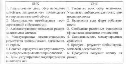 До перехода на рельсы рыночной экономики в Казахстане, как и во всем СССР, в качестве модели народного хозяйства исполь­зовался баланс народного хозяйства (БНХ) (табл. 1). В отличие от него СНС базируется на идеологии равноправия материального производства и сферы нематериальных услуг, реальности экономи­ческих связей самостоятельных хозяйствующих субъектов в усло­виях отделения непосредственного государственного управления от хозяйственной деятельности. При этом в качестве инструментов саморегулирования рыночной экономики признаются механизмы спроса и предложения, конкуренции, естественного перелива ка­питалов из одних отраслей в другие. СНС представляет собой бо­лее развитую модель экономического оборота, так как позволяет проследить его от производства продуктов и услуг и образования доходов, перераспределения и использования доходов до получе­ния конечных финансовых результатов — изменения финансовых активов и пассивов и характеристики их состава.