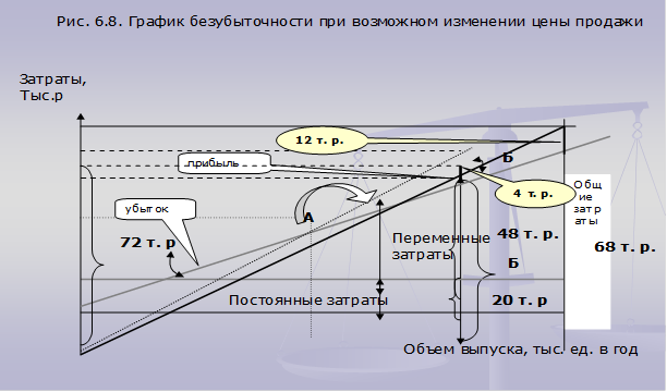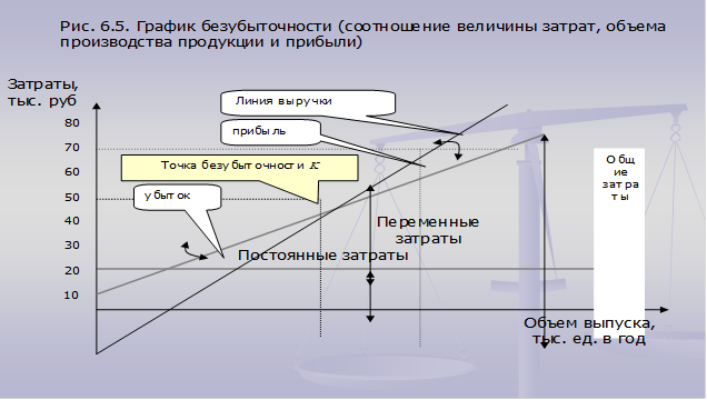 Точка критического объема производства показывает тот объем производства, при котором величина выручки от реализации продукции равна ее полной себестоимости. При увеличении производства зона прибыли расширяется и наиболее прибыльным становится производство при максимальной загрузке производственных мощностей. Эта зависимость и возможность ее изучения позволяют выявить изделие с большей рентабельностью, обеспечивают получение информации, помогающей быстро переориентировать производство в ответ на изменение условий рынка.