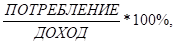Средняя склонность к потреблению (APC ) – это отношение потребления к доходу, выраженное в процентах: